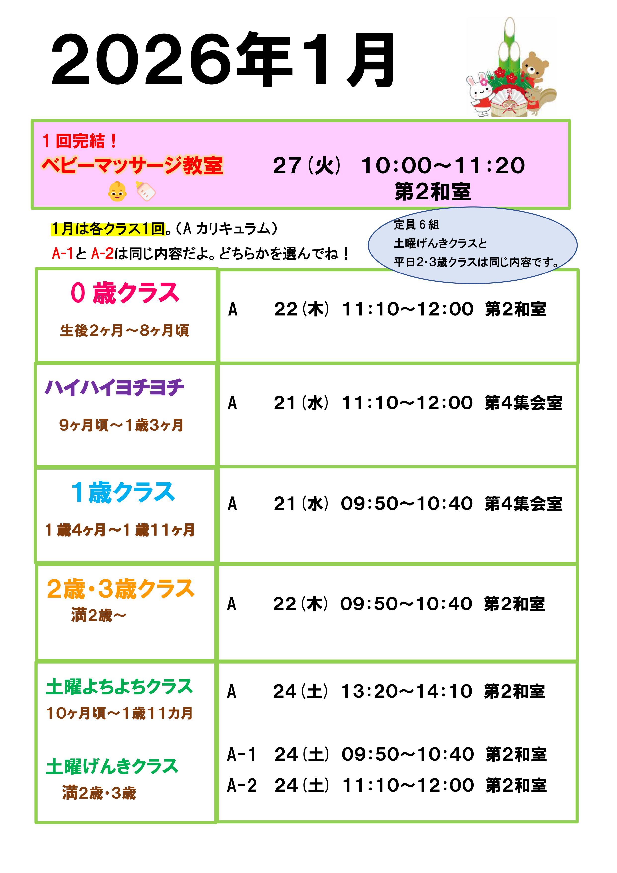 12月はスケジュール表通り、1歳クラスを開講致します。